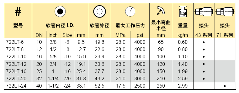适用介质:石油基液压油,水乙二醇,润滑油,空气和水。用于1.7MPa以上的空气时,软管需针刺。