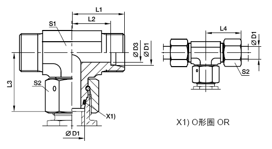 ET-EO24°锥/EO24°DKO旋转螺母/EO24°锥 三通组合接头