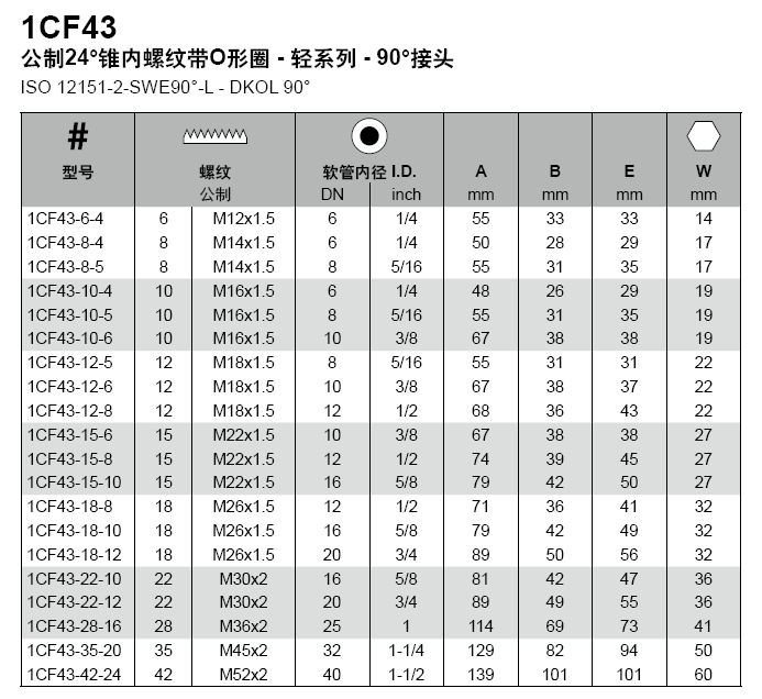 CF 公制24°锥内螺纹带O形圈-轻系列-90°接头