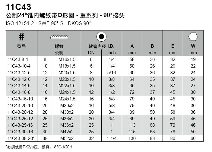 1C 公制24°锥内螺纹带O形圈-重系列-90°接头